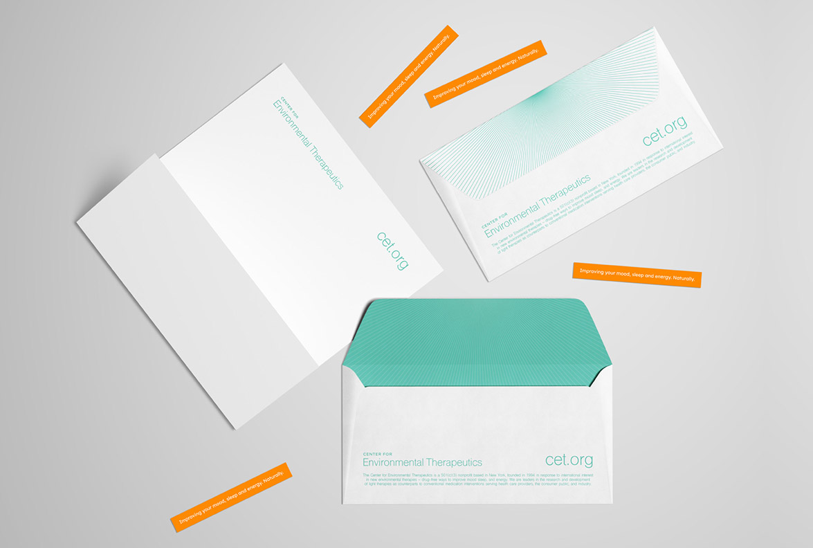 Para el diseño de identidad nos inspiramos en el arte de Olafur Eliasson y su increíble capacidad de alterar la percepción a través de la luz. Asi como Olafur la utiliza como herramienta para evocar emociones, el centro la utiliza como terapia para aliviarlas. La orientación de las líneas repartidas radialmente a través de la identidad aluden a la luz emitida por las cajas terapéuticas, las cuales deben de ser colocadas a 45º sobre la cabeza del usuario. Al crear un sentido de profundidad, el uso de lineas y el degradado de color son dos representaciones visuales del mismo principio: La luz como elemento intangible que influye en el receptor.